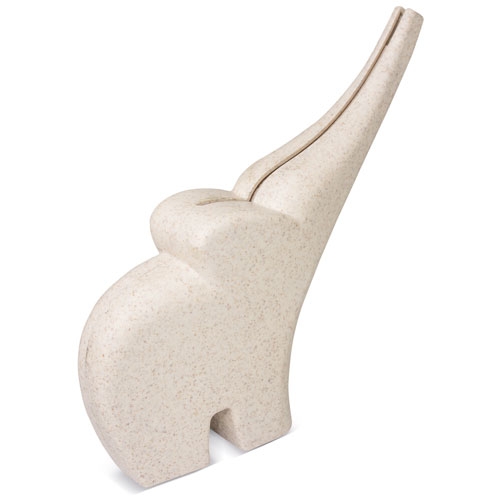 Hucha realizada en fibra de trigo, presentada en bolsa individual y caja de presentaci?n.