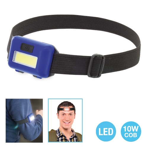 La Linterna multiusos Multiple es perfecta para llevarla a cualquier lugar, gracias a su compacto tama?o y facilidad de uso.Sin embargo, su tama?o no afecta a su potencia y caracter?sticas, ya que ofrece 3 posiciones de luz: – Baja intensidad- Alta intensidad (10W COB M?X.)- Luz intermitente, adem?s, ofrece un ajuste completo gracias a su resistente banda el?stica ajustable ofreciendo amplias posibilidades de uso ya que puede ser utilizada como luz frontal en la cabeza, luz de se?alizaci?n situada en el brazo o la pierna. Perfecta para cualquier actividad al aire libre en situaciones de escasa luminosidad.Incluye caja de presentaci?n. Alimentaci?n: 3 pilas AAA (NO INCLUIDAS)Disponible en 5 colores: Blanco, rojo, royal, verde y negro.