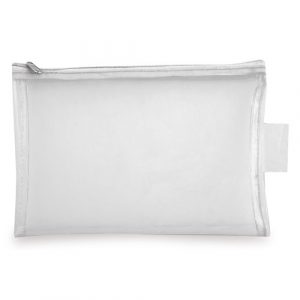 Neceser efecto satinado con apliques de polipiel. Cierre cremallera.