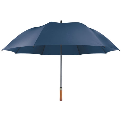 Paraguas con pulsador y mango de madera, adem?s su tela es impermeable. Disponible en colores marino, negro y piedra.